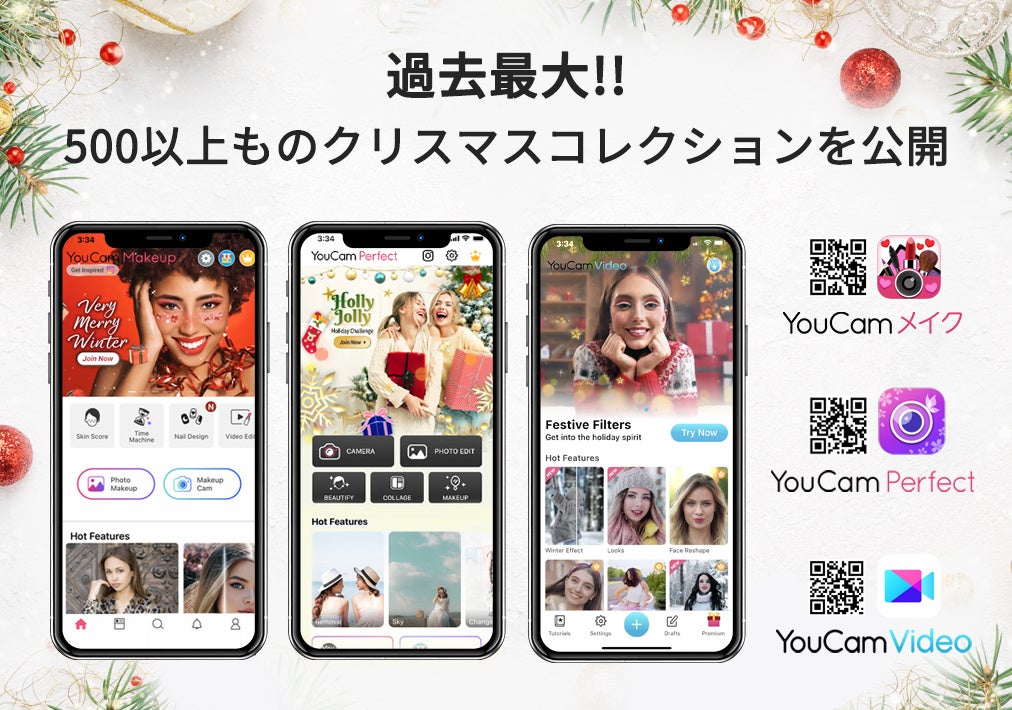 『YouCam アプリ』がリリースした2022年のクリスマスコレクションでは、新機能が豊富に搭載されており、写真や動画の編集が盛り上がること間違いなしの出来となっています。