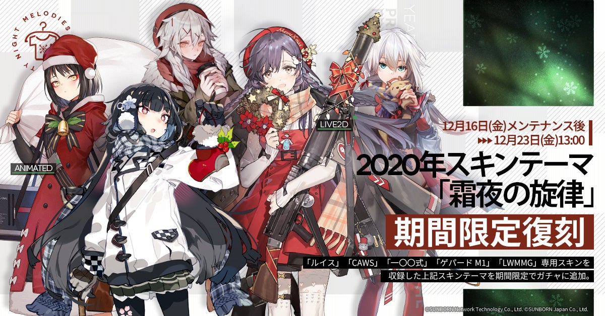 バラエティに富んだクリスマススキン『騒がしいクリスマス小屋』と『霜夜の旋律』が、12月16日(金)メンテナンス後からそれぞれ1週間の期間限定で復刻します。