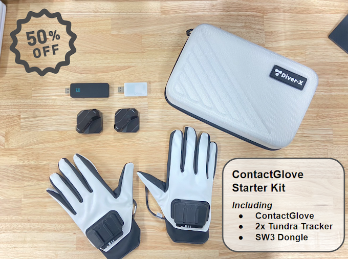 ContactGloveをSteamVR環境で使用するためには、LightHouseシステムに対応したトラッカーが必要になります今回、Tundra Labs &EOZと協力し、ContactGloveを購入した場合、TundraTrackerを半額で購入出来るキャンペーンを実施します。