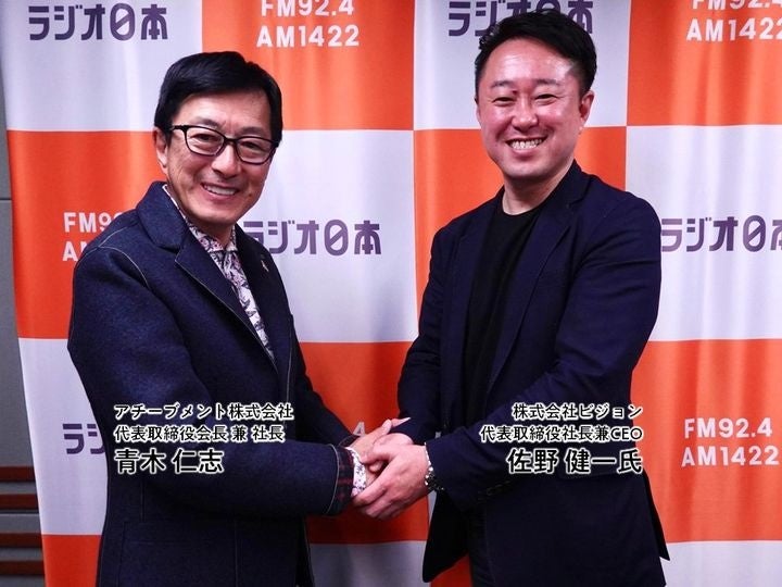 アチーブメント株式会社(所在地:東京都江東区)代表取締役会長 兼 社長の青木仁志がパーソナリティを務めるラジオ番組、青木仁志のトップリーダーと語る「成功の技術」がスタートしました。ラジオ日本より、毎週金曜朝の6時から始まる30分番組です。3回目・4回目の放送でゲストにお越しくださったのは株式会社ビジョン代表の佐野健一氏です、