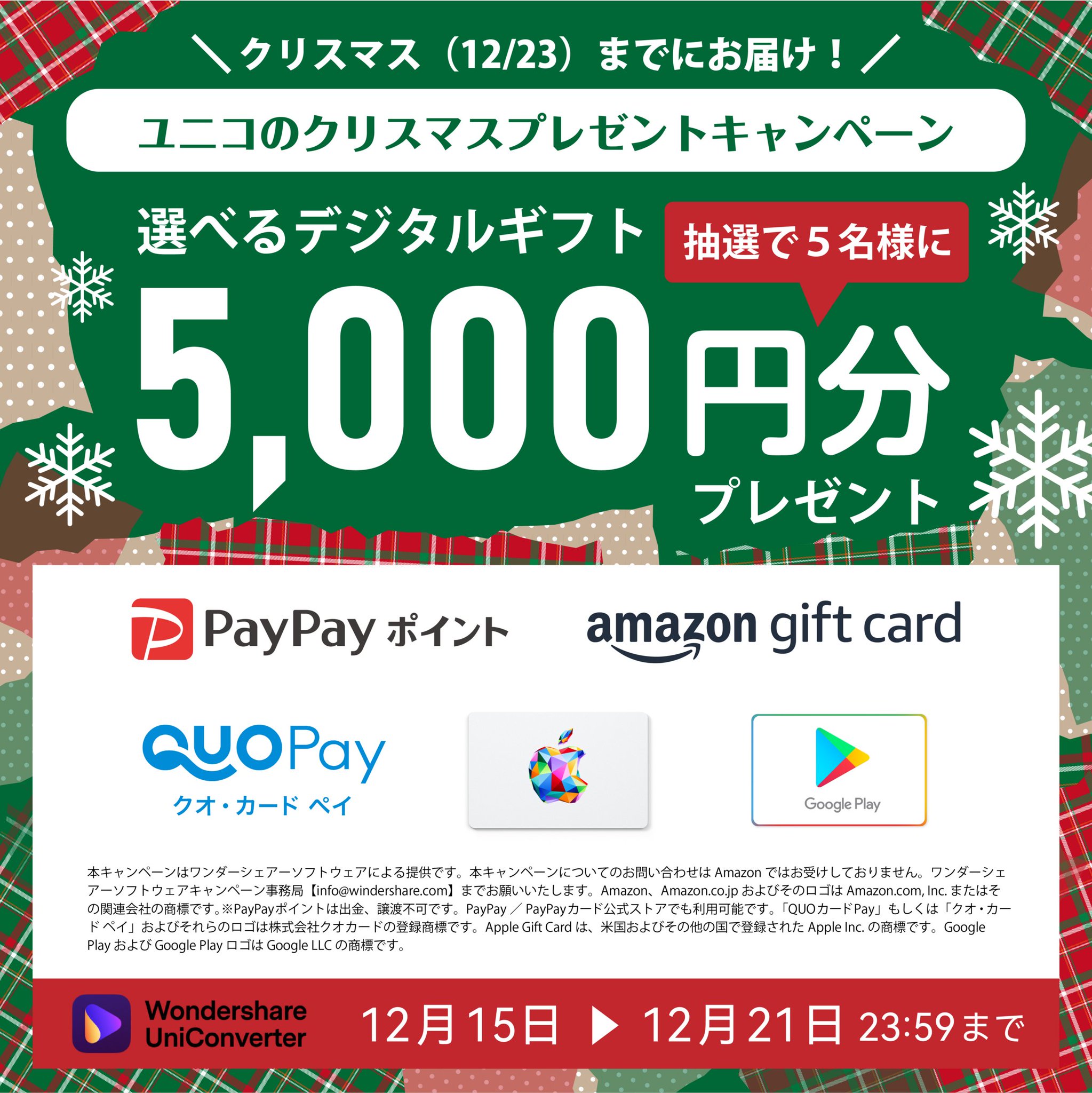 - フォロー&リツイートで参加! 〜 ユニコのクリスマスプレゼントキャンペーン 実施中 〜