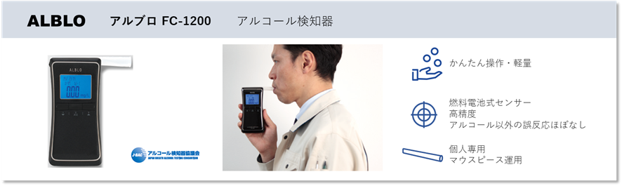 ※国家公安委員会が定めるアルコール検知器は、呼気中のアルコールを検知し、その有無