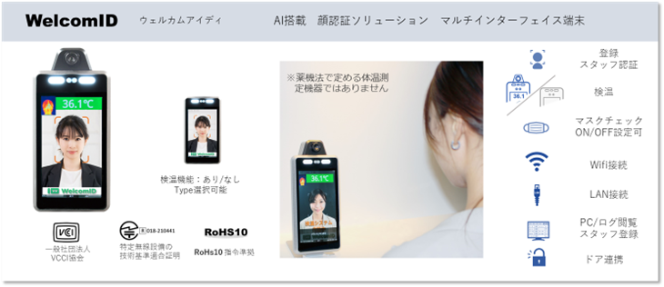 AI検温顔認証端末「WelcomID」※検温機能の有無は選択が可能
