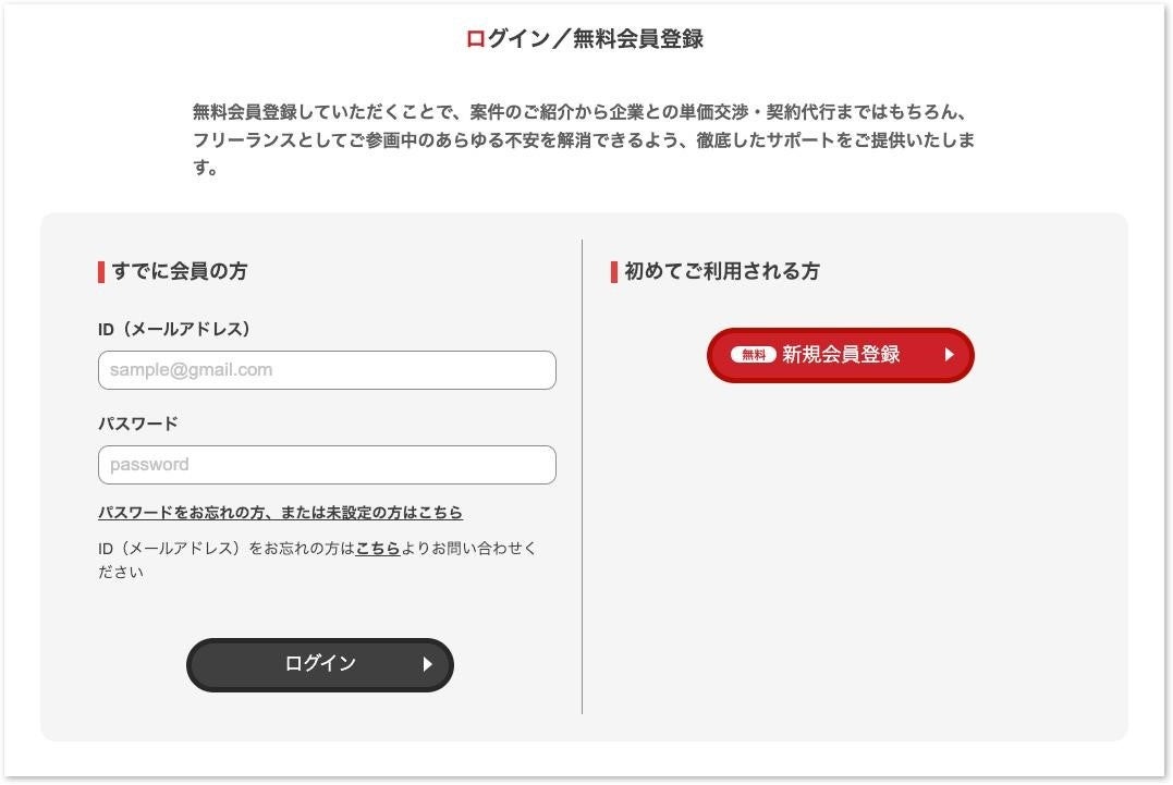 ログイン/無料会員登録ページ:https://www.extreme-freelance.jp/login