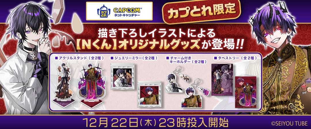 株式会社カプコンが運営する『カプコンネットキャッチャー カプとれ』(以下、『カプとれ』)において、人気声優によるYouTube番組「セイユーチューブ」に登場する“Nくん”とのコラボが決定いたしました。