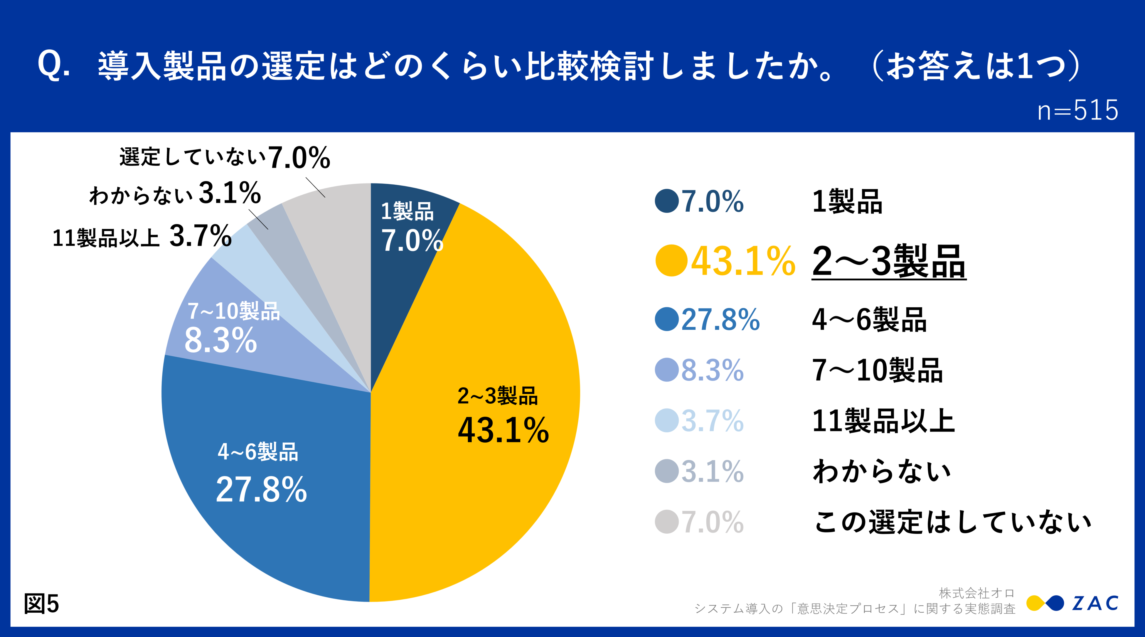 - 導入製品の比較検討は「2~3製品」43.1%