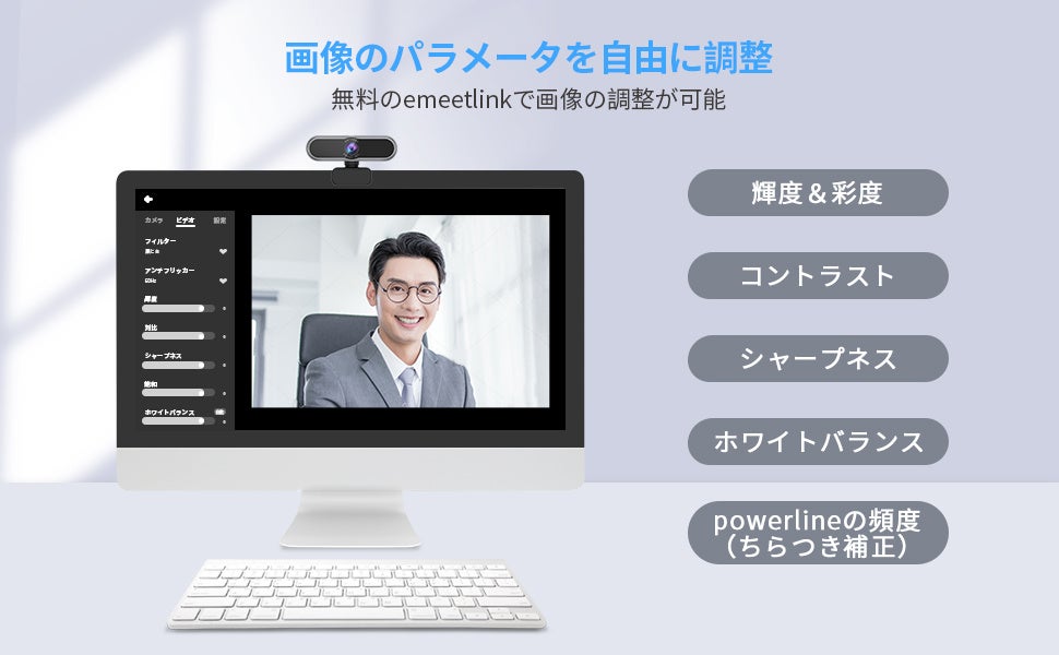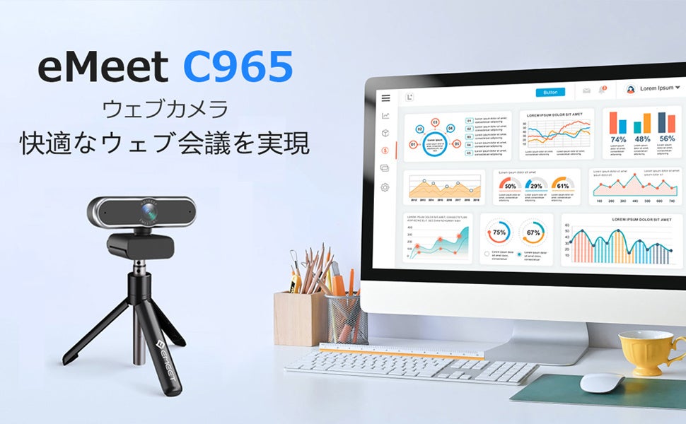 EMEET ウェブカメラ C965はアクティブノイズキャンセル機能搭載の高感度デュアルマイクを内蔵しており、周囲のノイズを最小限に抑え、音声を強化するため、音声が明瞭に伝わります。また、ウェブカメラとして、EMEET C965は自動補光機能も装備しており、薄暗い場所でもきれいに映られ、テレワークで欠かせない一品です。