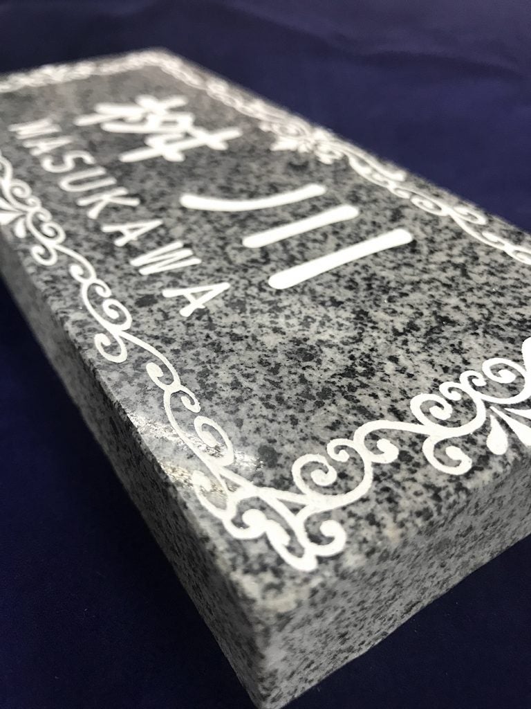 CO2レーザーでは様々なものに加工することが出来ます。今回は、御影石に加工したものをご紹介します!