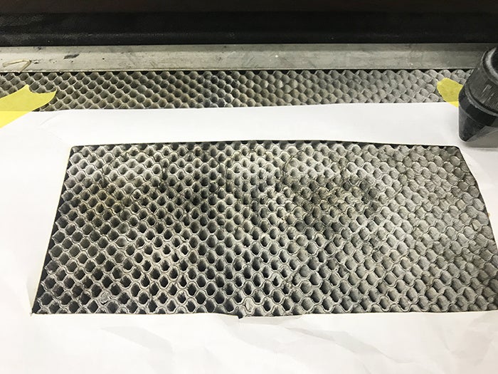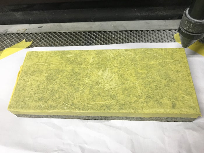 彫刻する部分だけではなく、サイドもしっかりと覆います。こうすることで、レーザーによる焦げを防ぎ、仕上げの塗り作業も楽になります。
