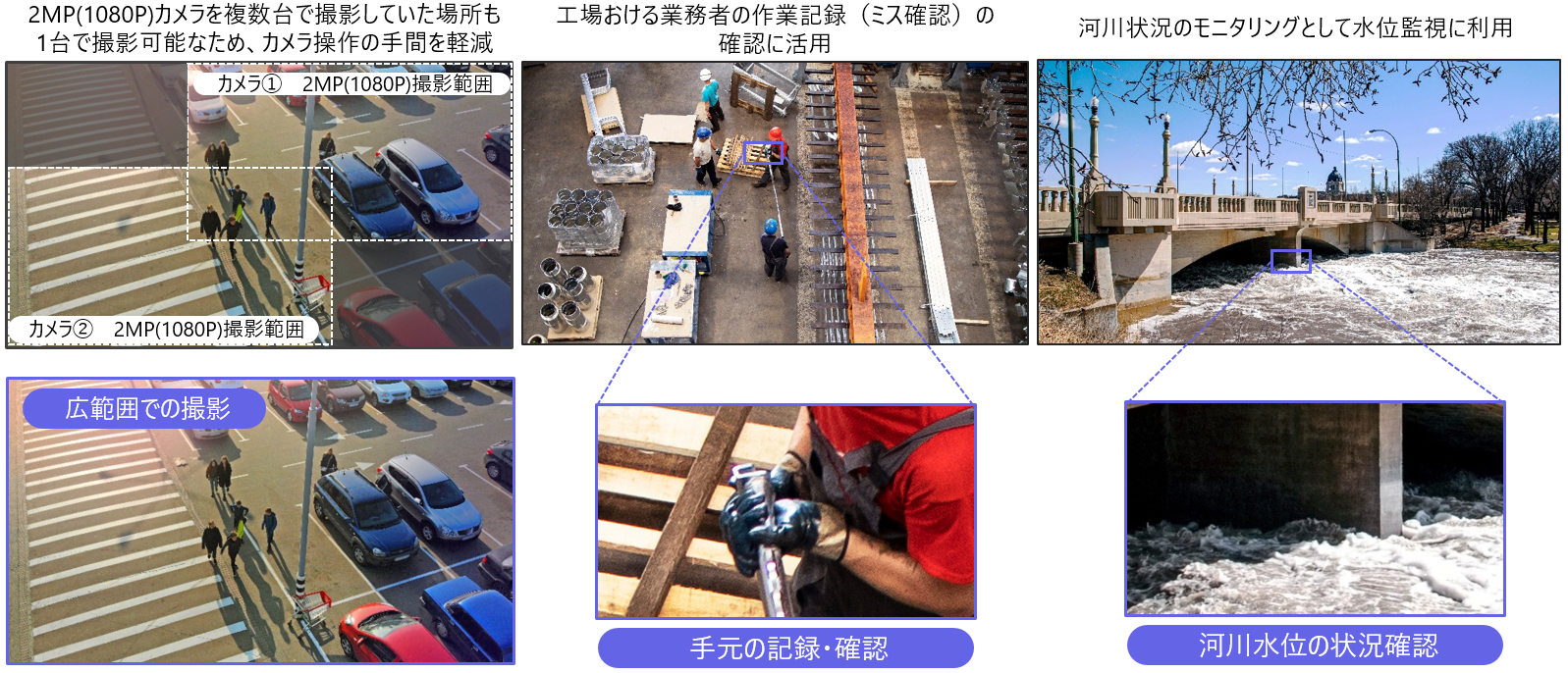 1. 光学ズーム倍率10倍、5MP対応の高解像度で広範囲の撮影・AI画像分析精度向上を可能に。