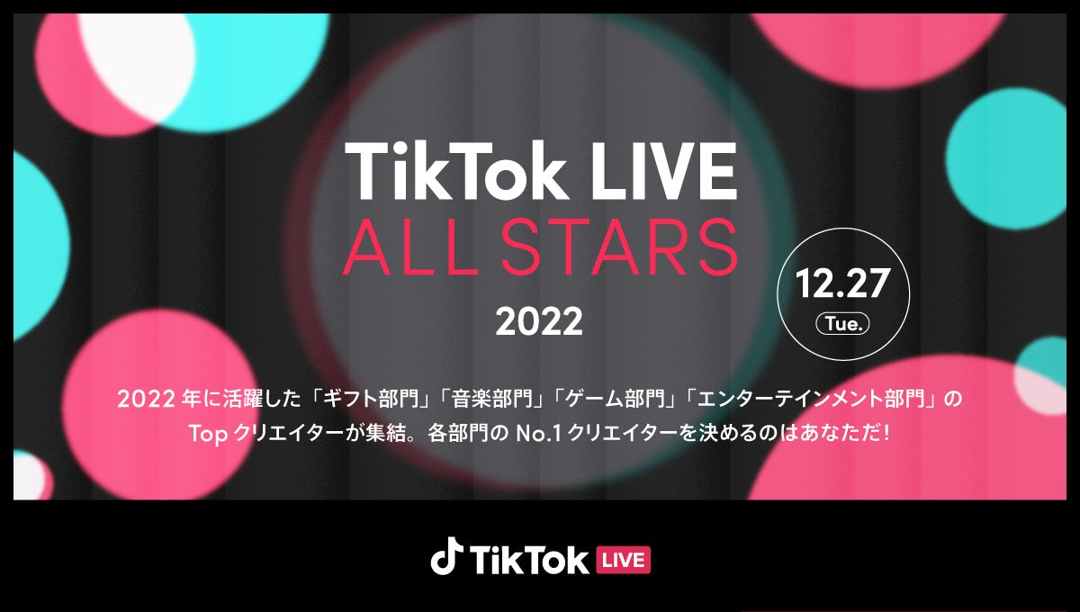 ショートムービープラットフォーム「TikTok(ティックトック)」は、TikTok LIVEで活躍するクリエイターのパフォーマンスの披露と表彰を行うイベント「TikTok LIVE ALL STARS 2022」を12月27日(火)に開催し、TikTok LIVEにて当日の様子を生配信いたします。