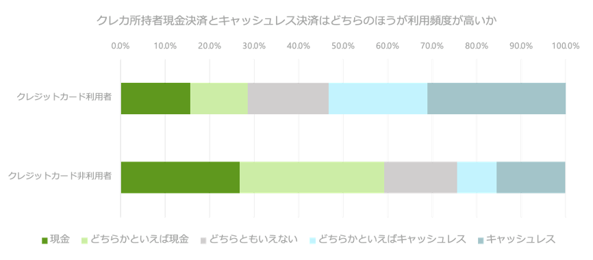直近1ヶ月以内のクレジットカード利用者と非利用者に対し、現金・キャッシュレスの利用頻度はどちらの方が高いかを聴取。