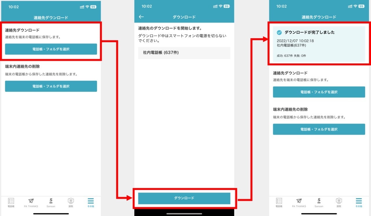 社内電話帳ダウンロード機能 端末内連絡先ダウンロード画面(イメージ)
