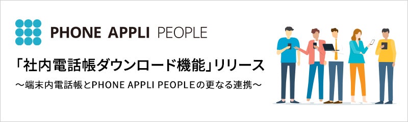 PHONE APPLI PEOPLEは連絡先をクラウド上で一元管理して、最新の連絡先情報を同僚と共有することが可能です。以前より、お客様から“スマートフォンなどのモバイル端末を業務で利用する場合、端末内電話帳にも連絡先が入っていてほしい”というご要望をいただいておりました。そのようなご要望にお応えして、実現したのがPHONE APPLI PEOPLEの「社内電話帳ダウンロード機能」です。