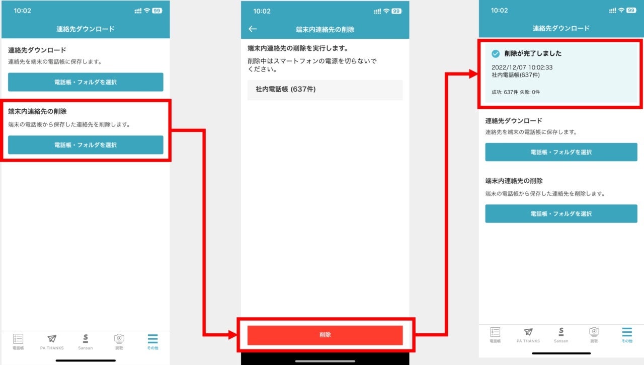 ダウンロードした連絡先情報を端末内電話帳から削除可能