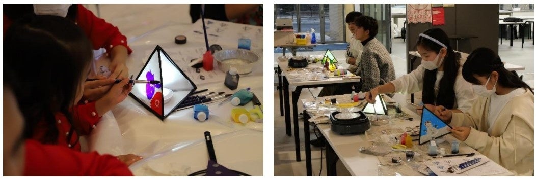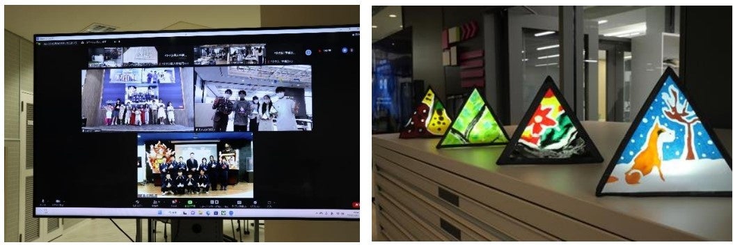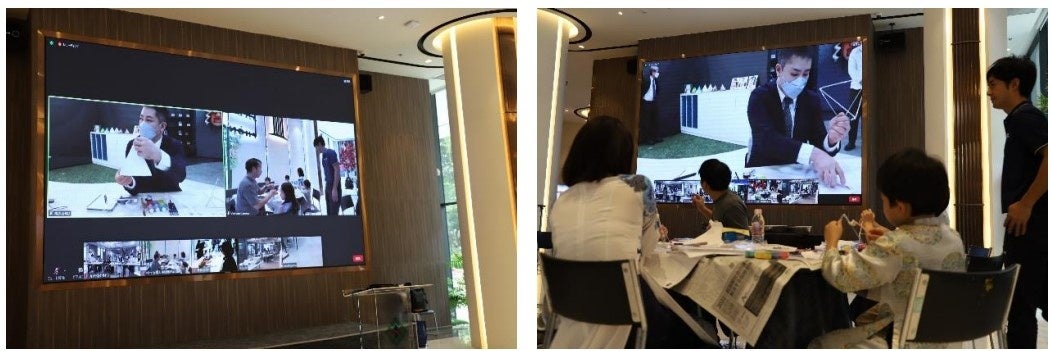 青森・東京・ベトナムの3会場をオンラインで結び、青森会場からのねぶた師指導のもと、3会場での参加者の皆さまに、オリジナルのミニライト作成を体験していただくイベントとして開催されました。