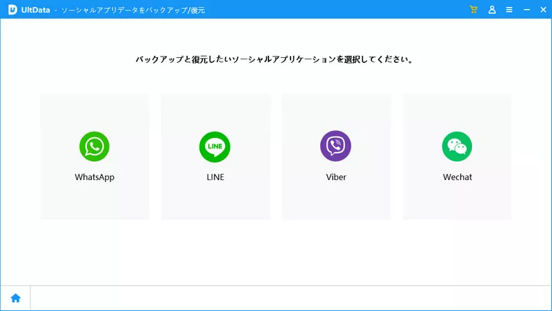 Step1:UltDataを開き、「ソーシャルアプリデータをバックアップ&復元」を選択します。