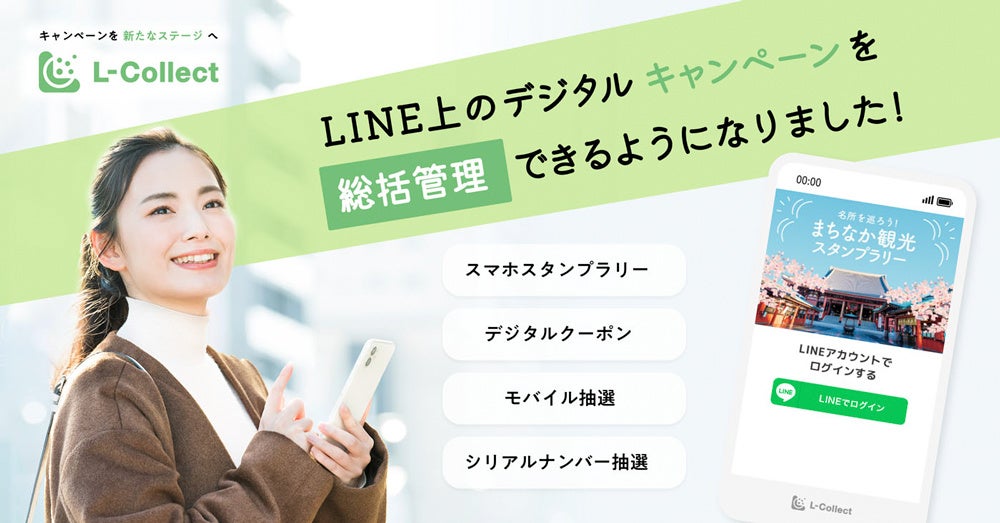 「L-Collect」は、LINEを通して非接触スマホスタンプラリーやデジタルクーポン、モバイル抽選などの多様なキャンペーンを実施でき、ユーザーデータを蓄積・管理できるサービスです。
