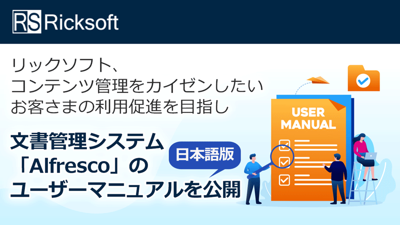 2022年1月に改正された電子帳簿保存法やリモートワーク中心の働き方に変化したことをきっかけに、文書管理に関する仕組みの見直しが活発化しています。これまでのようなオフィスワーク中心の働き方では、印刷した紙文書によって近くの誰かに聞いたり、上長に口頭で承認を促したりなど対話によって文書に関わる業務プロセスや情報管理が行われておりました。しかし、法改正によってデジタル化が義務化され、さらにリモートワークが中心になることで、デジタル化された文書情報に対してのコミュニケーションや業務プロセス、および文書情報管理をする必要性が高まってきたのが活発化している理由です。さらに2023年10月にはインボイス制度への対応もしなければならず、文書情報管理の見直しが強く求められています。リックソフトでは、このような文書に関する変化にすばやく対応でき、該当する市場ではリーダーに位置付けされる製品「Alfresco」をより多くのお客さまにご利用いただくために、最新版のユーザーマニュアルの日本語版を公開いたしました。