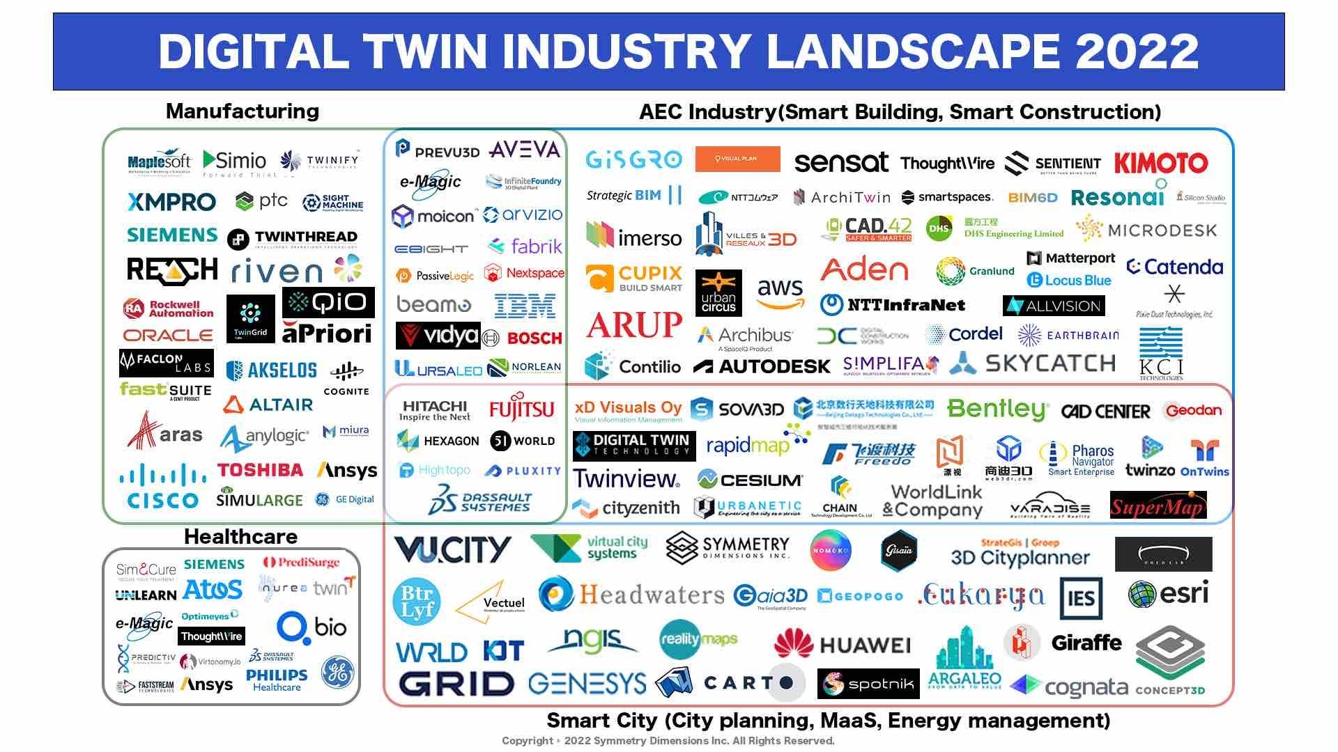 シンメトリーは、継続的に業界リサーチを続け、カオスマップを更新することで、デジタルツインの活用領域、トレンドを明確にしていきます。