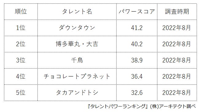 『タレントパワーランキング』では、タレントパワーランキングに登録されている吉本興業に所属するお笑い芸人のスコアを調査。