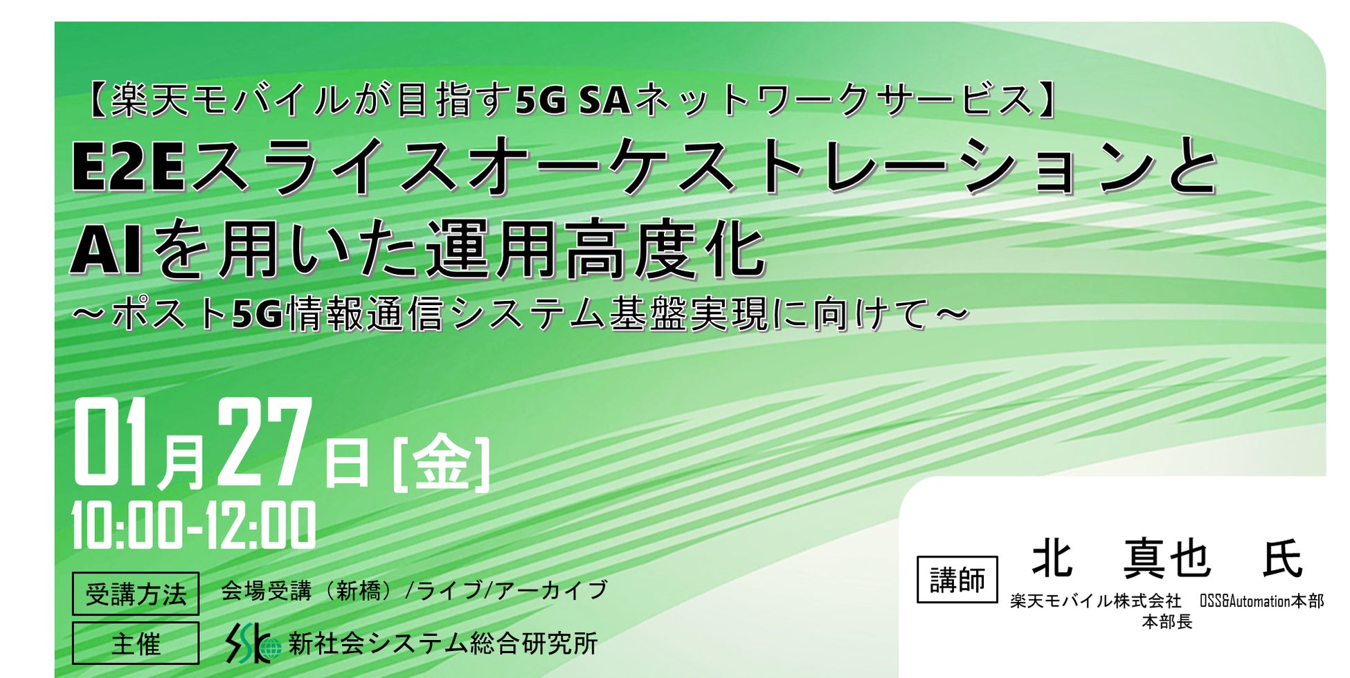 「E2EスライスオーケストレーションとAI活用」と題して、楽天モバイル株式会社 OSS&Automation本部 本部長 北 真也氏のセミナーを2023年1月27日(金)に開催!!