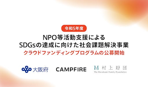 CAMPFIRE、大阪府と村上財団による「NPO等活動支援によるSDGsの達成に向けた社会課題解決事業」クラウドファンディングプログラムの公募を開始