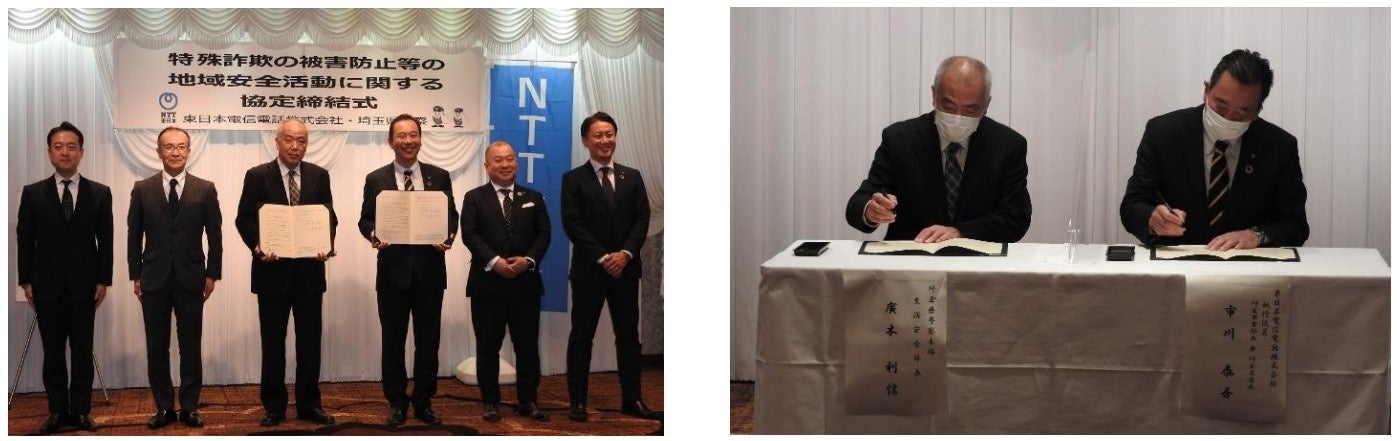 埼玉県警察本部(生活安全部長:廣木 利信)と東日本電信電話株式会社 埼玉事業部(事業部長:市川 泰吾、以下「NTT東日本」)は、「犯罪の起きにくい社会づくりを推進する」目的のため「特殊詐欺の被害防止等の地域安全活動に関する協定」を締結しました。