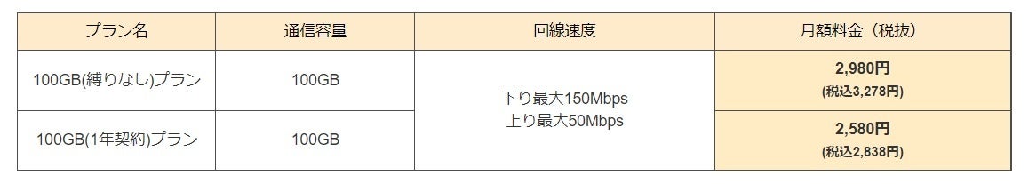 「100GBの高速通信が可能なポケット型WIFIサービスを業界最安級2,580円(税込2,838円)で提供」