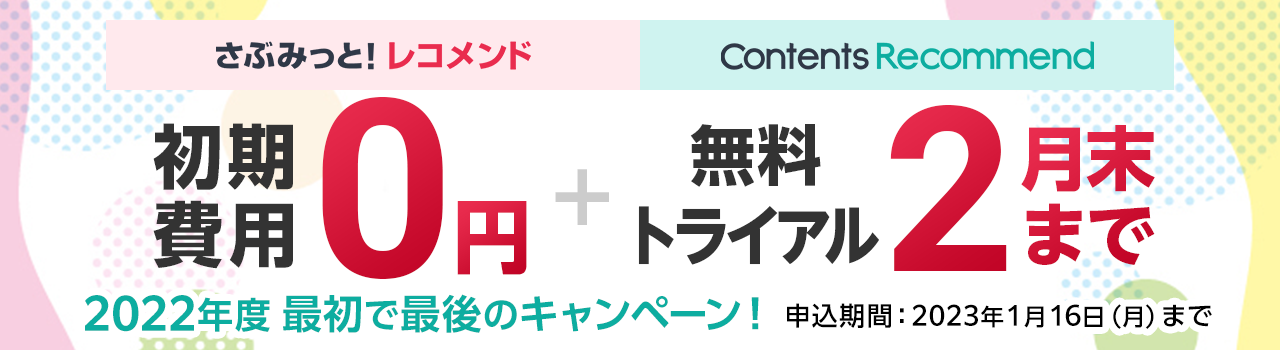 導入も簡単、かつ運用負荷が低い『さぶみっと!レコメンド/Contents Recommend』をこの機会にぜひご検討ください。