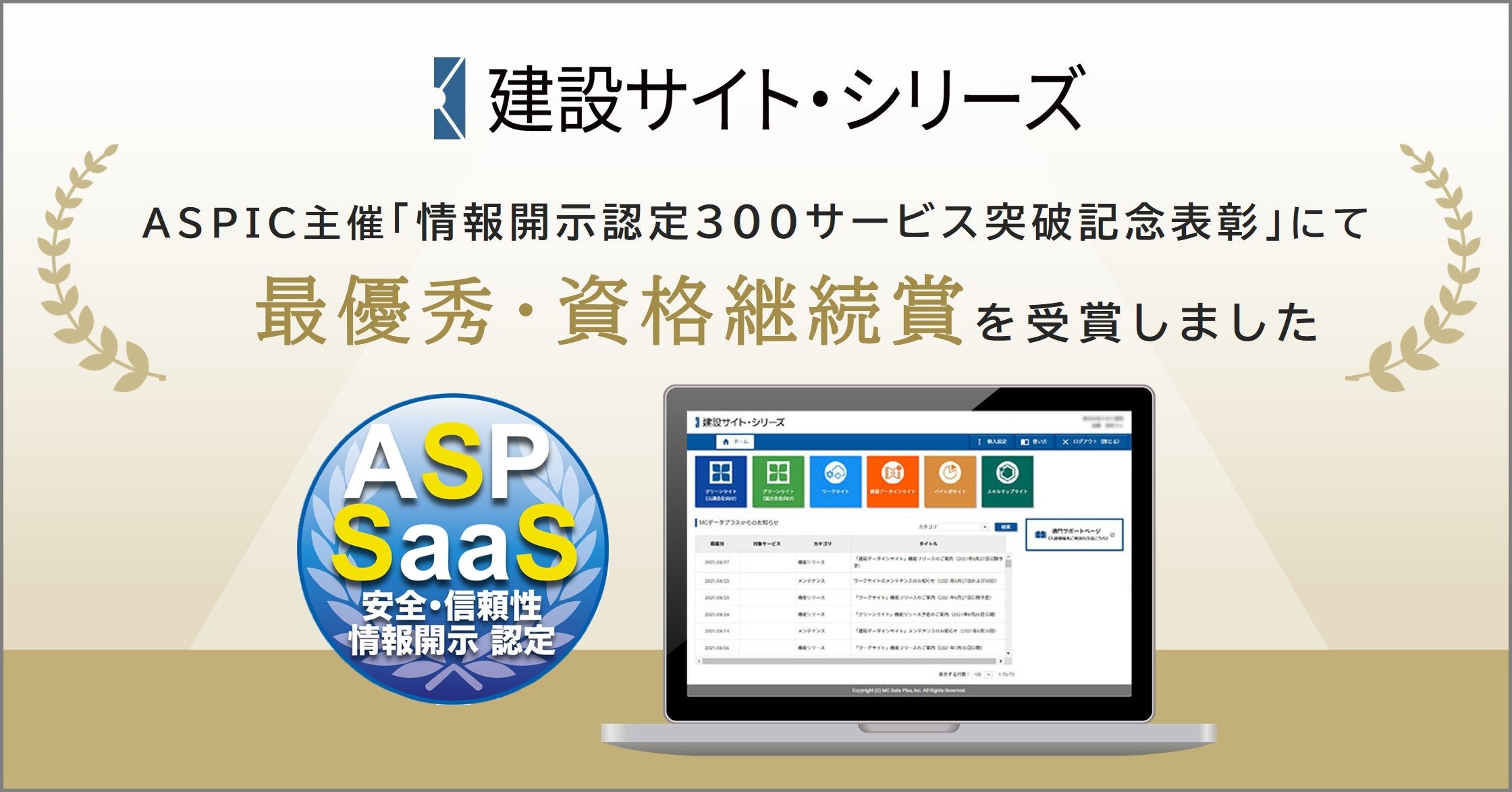 「建設サイト・シリーズ」は、建設業界に特化したクラウドサービスを提供するリーディングカンパニーの責務として、ASPICの認定制度が設立された当初より積極的に情報開示を行ってきました。「建設サイト・シリーズ」の開示情報はASPICのホームページにて公開されています。
