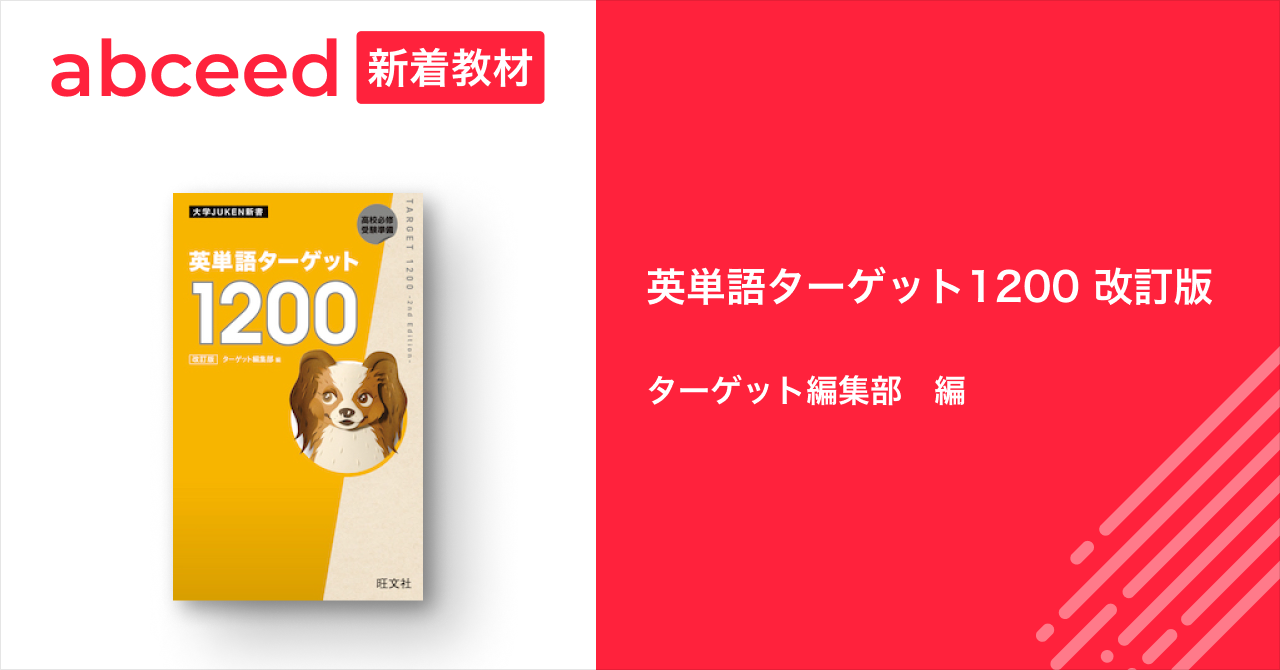 ターゲットシリーズは、大学受験用英単語集書店売上No.1※2の『英単語ターゲット1900』をはじめ、1984年の誕生以来 、“でる順” “一語一義”という一貫したコンセプトによって多くの大学受験生から支持されてきました。2020年1月に『英単語ターゲット1900』、『英単語ターゲット1400』、『英単語ターゲット1200』の3点が改訂、2021年7月に『英熟語ターゲット1000』が改訂され、旺文社独自の大学入試データベースの分析に基づく最新の「でる順」を反映しています。