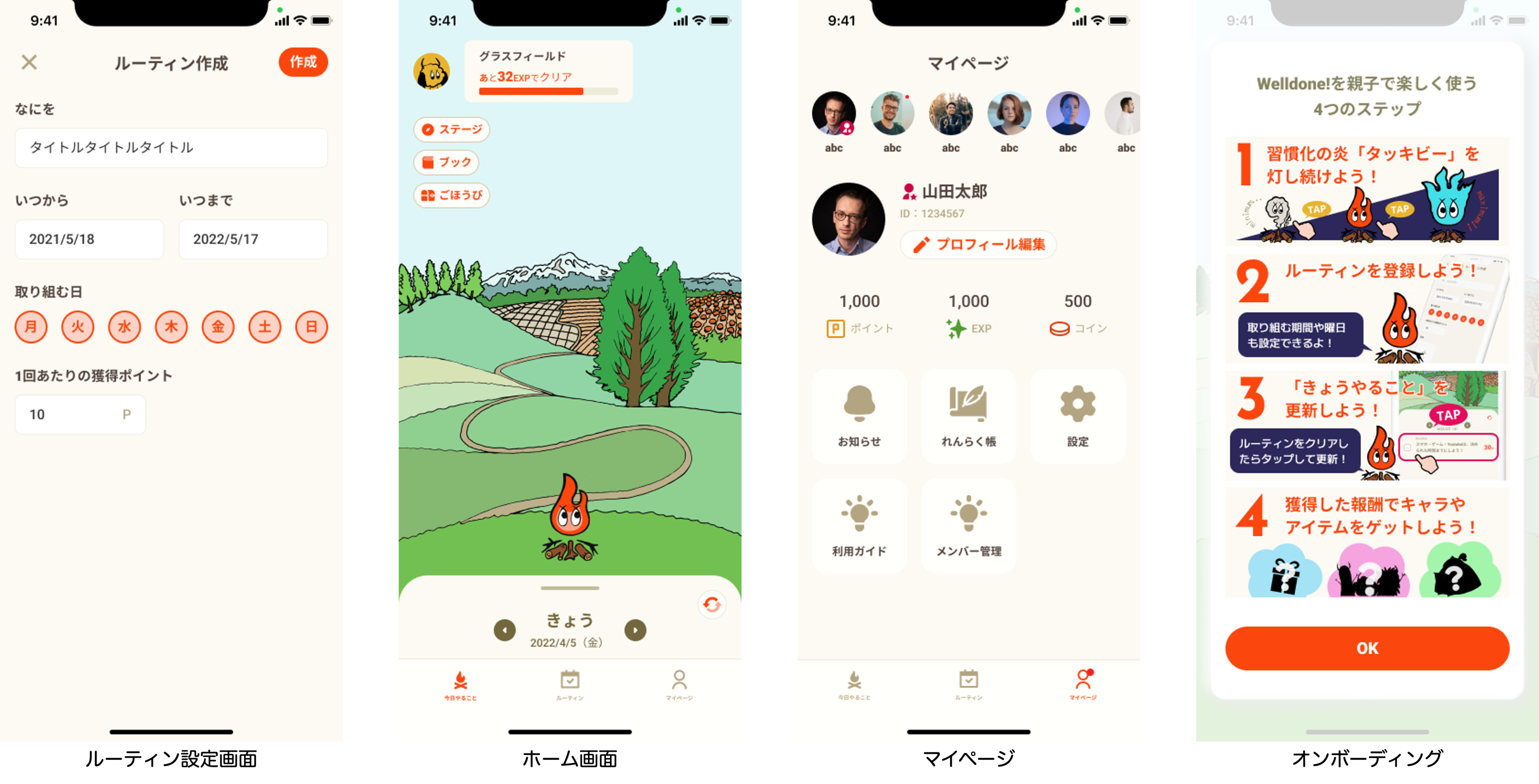 Welldone!(ウェルダン)は子供の非認知能力を育むためのサポートツールとして2021年7月にβ版をローン後、数多くのユーザーインタビューやユーザーレビュー、お問い合わせフォームに寄せられるユーザーからのご要望などと真剣に向き合い、子供の習慣化に特化した家族・親子向けアプリとして「子どもが楽しん続けられる仕組み」にフォーカスしてゲーミフィケーション機能を大幅に強化したver1.0を2022年8月をローンチしました。その結果、アプリの利用継続率は日本の教育アプリ平均を大きく上回り、App StoreやGoogle Playでの評価も向上しました。今回のアップデートでは、ユーザーの皆さまがWelldone!を初めてご利用いただく際に、迷わず直感的に設定ができるようシンプルでわかりやすいUIに変更いたしました。