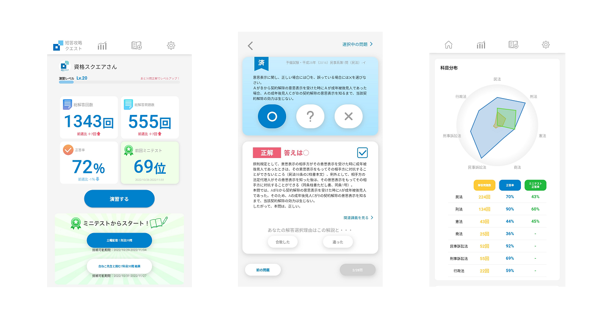 - 「短答攻略クエスト」アプリについて:司法試験合格者の学習法を詰め込んだ充実の機能