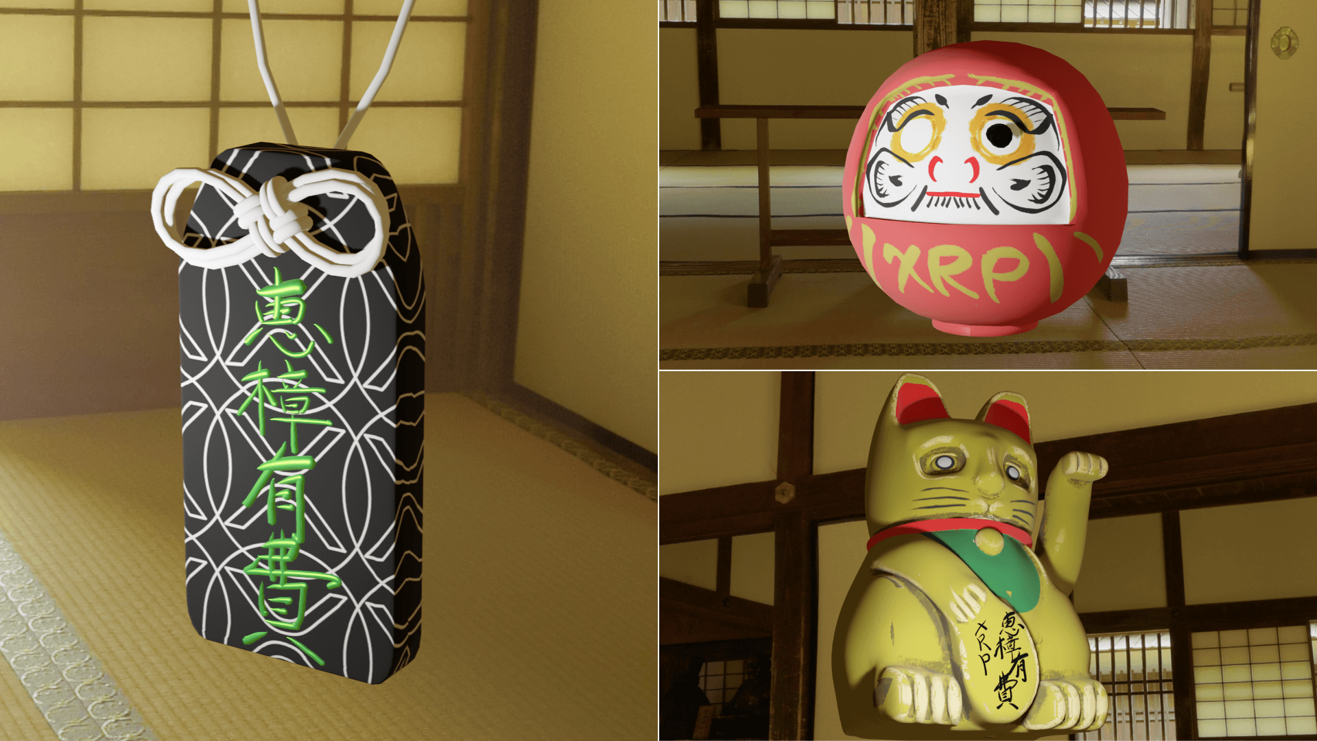 “恵樟有費” written on the amulets is Kanji(Japanese Han characters) for XRP as substitute character. Through this new collection, we wish XRP and XRP holders from all over the world good luck and fortune. These NFTs are available at xrp.cafe.