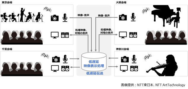 <リアルタイム・リモート演奏 低遅延通信技術イメージ>