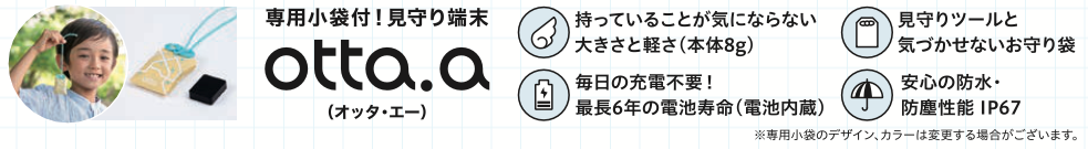 ottaでは、今後も、IoTテクノロジーの活用により、子どもの”安全”と親の”安心”を繫ぐ、新しい見守りサービスを提供してまいります。
