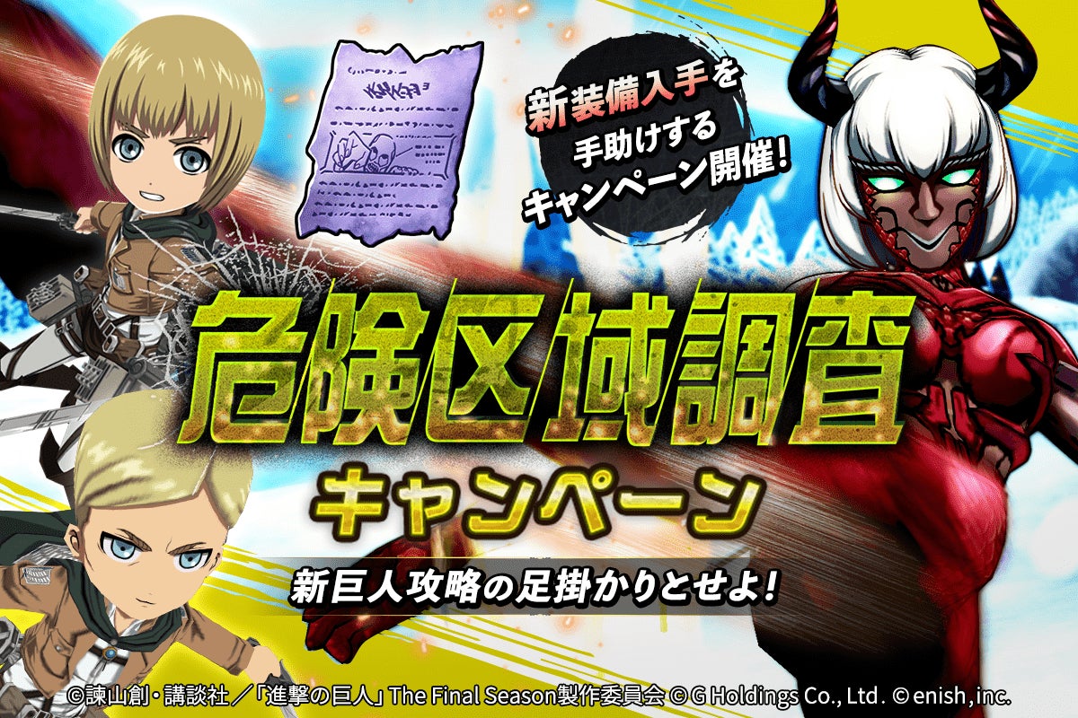 今回の新巨人追加を記念して赤輝石や巨人殲滅証がもらえるログインボーナスや「異形の巨人 色欲の依頼書」が獲得できるミッション等盛りだくさんなキャンペーンを開催!