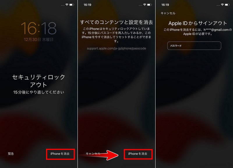 質問1、セキュリティロックアウトからiPhoneを消去すると、どうなる?