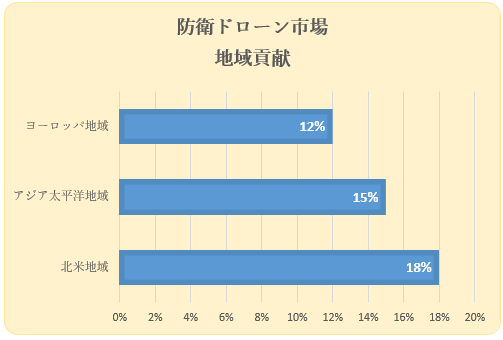 質問: 防衛ドローン市場で最大のシェアを占めるのはどの地域ですか?