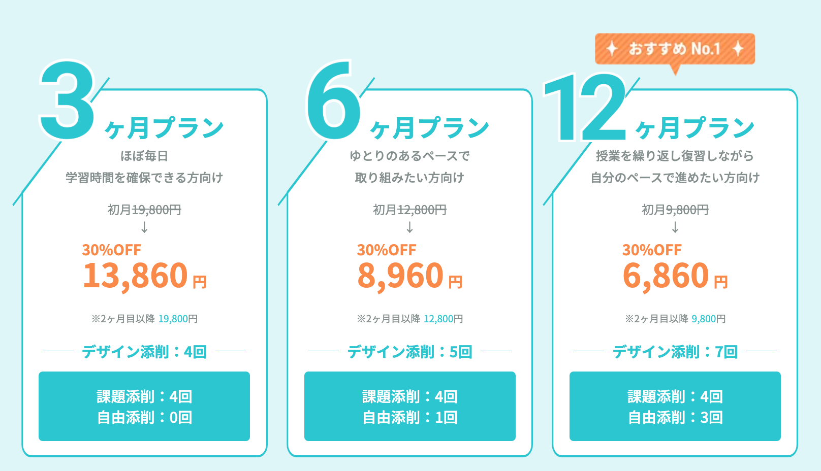 3ヶ月プラン :初月13,860円 (通常:月額19,800円)