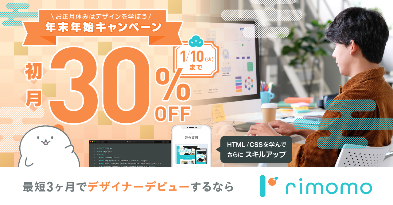 今だけ受講料が初月30%OFFになる年末年始キャンペーンを開催中です!