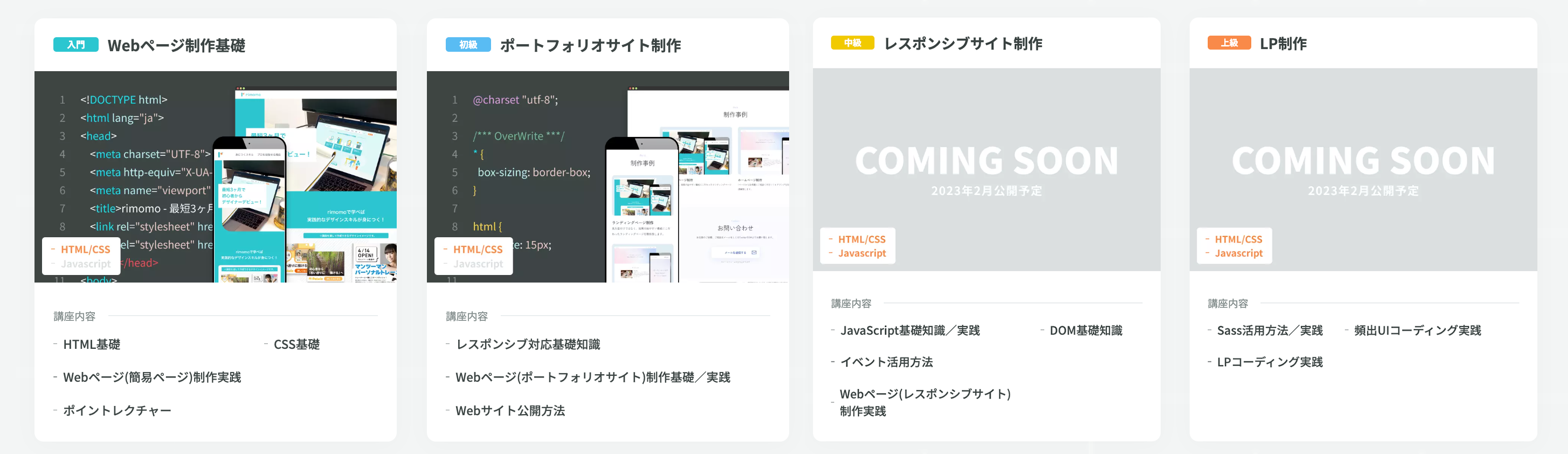 HTML/CSSの基礎知識を学びWEBページ制作の実践方法を学べるコースです。