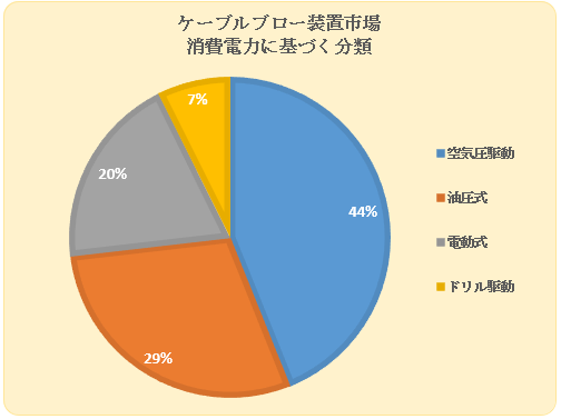 空気圧駆動ケーブルは、市場の最大のシェアを保持すると予想されます。空気圧駆動のケーブル吹き込み装置では、まず供給空気が除湿されています。その後、ろ過して、加圧されてケーブルがパイプに高速で吹き込まれます。空気圧駆動のケーブル送風装置は、主に光ファイバーと小型の同軸および多対ケーブルを事前に設置されたダクトに送風するために配置されます。この機器は、困難なルートにあるケーブル事業者にとって簡単に設置できます。油圧駆動のケーブル送風装置に比べて安価です。
