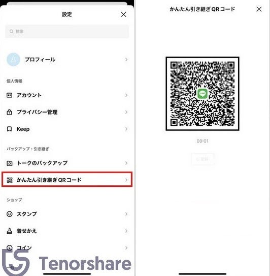 Step2:古いiPhoneでLINEアプリを開き、「設定」>「かんたん引き継ぎQRコード」の順にタップして、QRコードを表示させます。