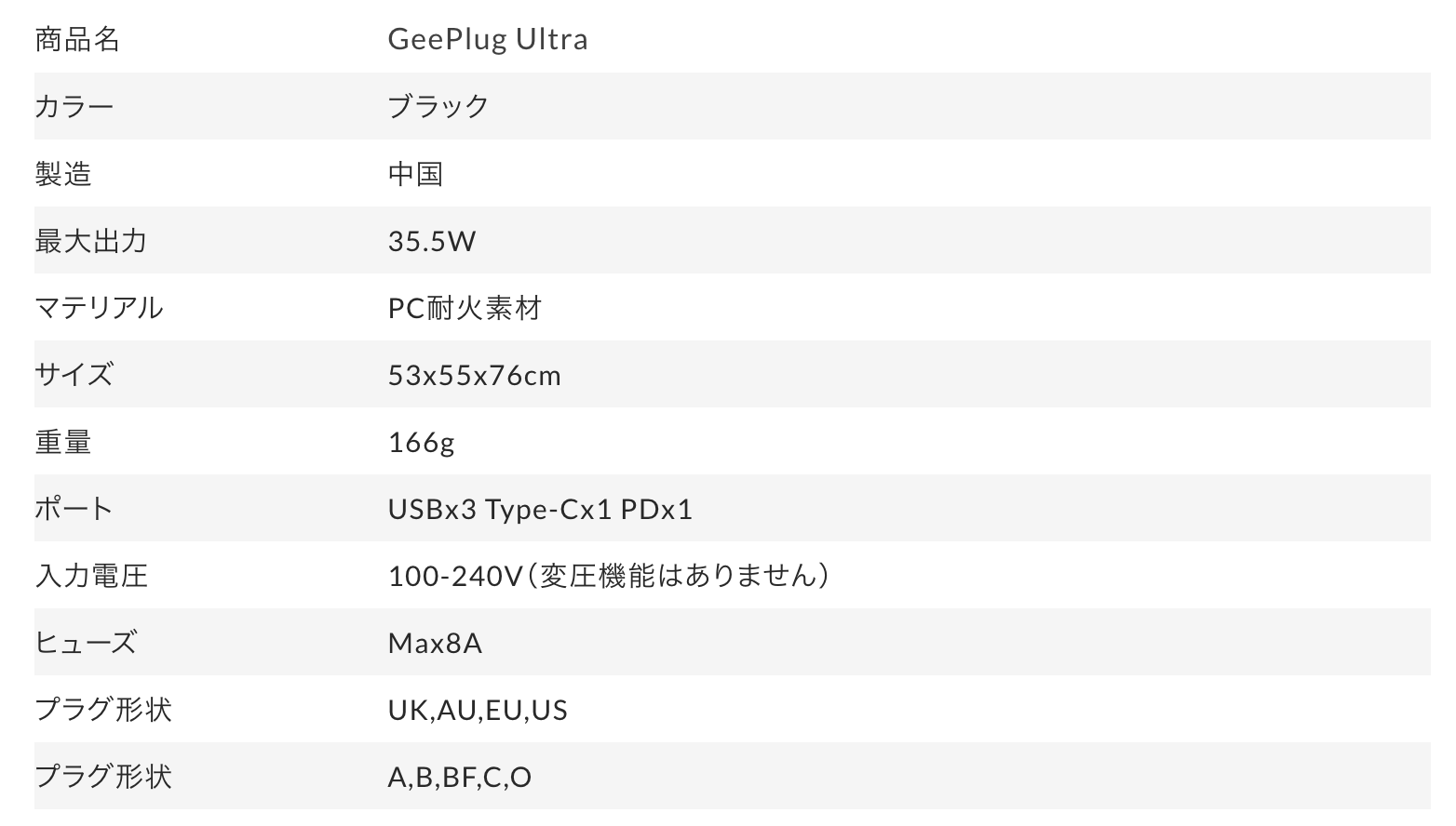 GeePlug Ultra(ジープラグウルトラ)のPD出力は最大で20W。