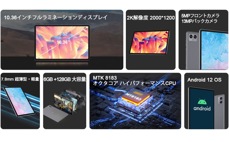 【6GBのランニングメモリと128GBの高速ストレージを搭載】ストレージに拡張可能なMicroSDをサポートしています。メモリ容量が大きいとタブレットはサクサク動くようになります。Webサイトや動画を見たり、重いアプリや高画質のゲームを楽しみいただきます。お気に入りの本、曲、写真、映画、ゲームなど、好きなものをすべてダウンロードして保存できます。容量不足に困ることなく十分にお楽しみいただきます。6000mAhの大容量バッテリーとAIインテリジェント電源管理により、7時間の映画・読書・ブラウジングを楽しむことができます。