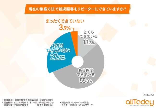 今回の調査で、今の飲食店の集客方法での新規顧客のリピート状況が明らかになりました。
