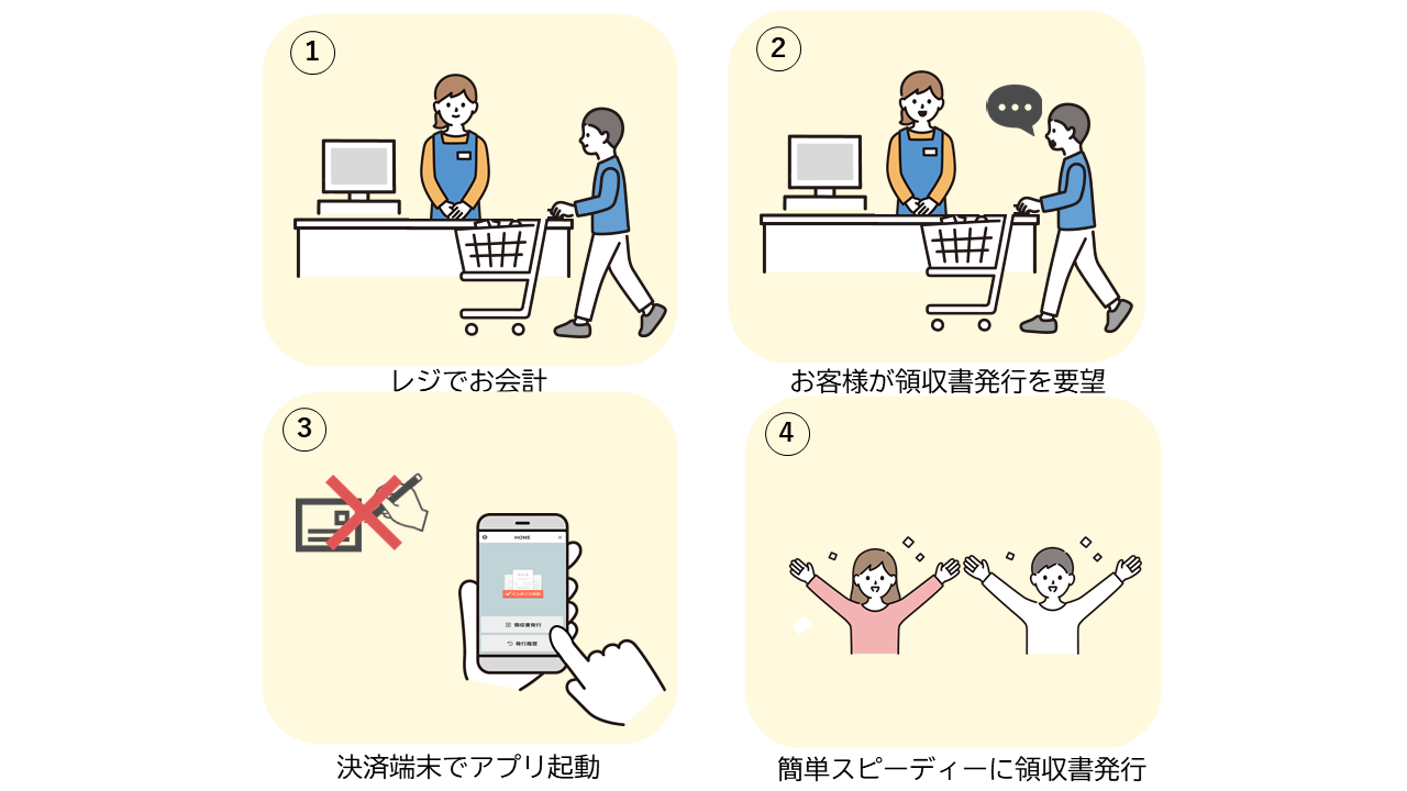 インボイス対応の領収書をその場で発行します。