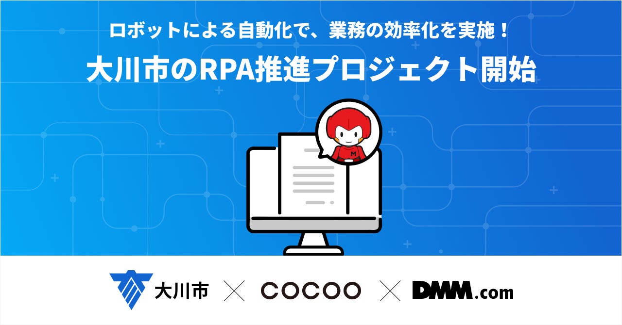 人財×デジタル事業のコクー株式会社(本社:東京都千代田区、代表取締役CEO:入江 雄介、以下「コクー」)は、RPA事業において、福岡県大川市(市長:倉重 良一、以下「大川市」)と合同会社DMM.com(本社:東京都港区、会長 兼 CEO:亀山 敬司、以下「DMM」)と協働して、大川市の業務のRPA化を実施いたしました。